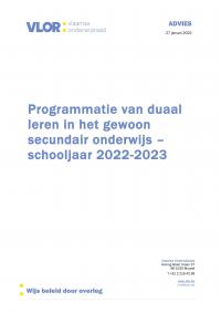 Programmatie van duaal leren in het gewoon secundair onderwijs. Schooljaar 2022-2023. Advies Vlor