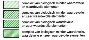 Gezien vlakken of gebieden door complexen van karteringseenheden getypeerd kunnen worden, kan ook de evaluatie een combinatie van de bovenvermelde waarderingsklassen zijn.