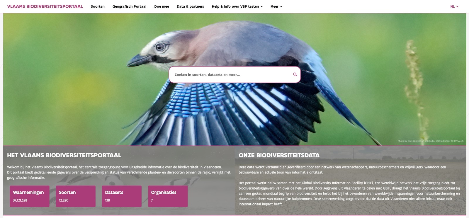 To ensure the findability, availability and optimal use of species data in the near future, we are developing a Flemish Biodiversity Portal. This will be freely accessible to all agencies of the Flemish government and citizens, to support policy and research.We will pay attention to both the acquisition of the relevant datasets and making them available to the user, with an optimal adaptation to their needs.