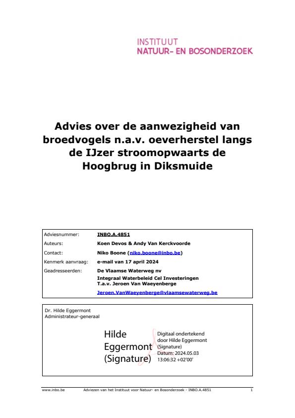 title = "Advies over de aanwezigheid van broedvogels n.a.v. oeverherstel langs de IJzer stroomopwaarts de Hoogbrug in Diksmuide",