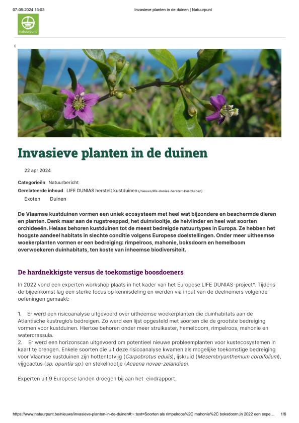 title = "Invasieve planten in de duinen: de hardnekkigste versus de toekomstige boosdoeners",