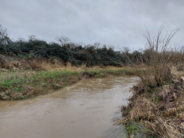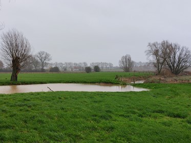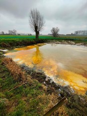 Going back to the project I was following, after a discovery of a population in a pond in nearby France, in 2022, in West Flanders, scientists from INBO have found this species in three different ponds in an agricultural area close to the border with Wallonia and France. After the discovery in France, they promptly decided to run a survey using environmental DNA, which allows detection based on water samples. No positive detection at that time, however. Yet, a few years later, it became evident that they had been looking in the wrong neighborhood. The frog apparently spread via the river Lys and took a smaller tributary to swim upstream, the Douvebeek (see picture below). A new survey was undertaken in 2022 and the frogs were detected at several places, including three ponds where reproduction was ascertained.
