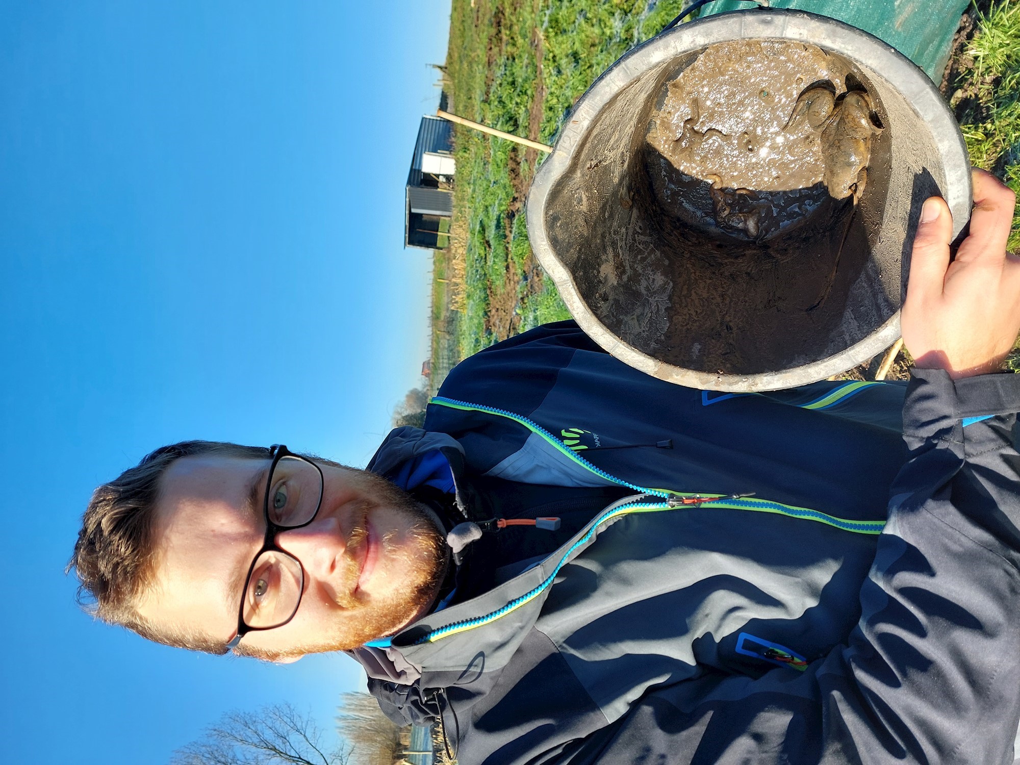 Aangekomen op het terrein waar ik mijn eerste veldwerk zou verrichten in en nabij poelen in landbouwpercelen, besefte ik dat de ronde vorm van de poelen naar alle waarschijnlijkheid het gevolg is van de ontploffing van een bom tijdens de Eerste Wereldoorlog. Het is niet ongewoon om in deze streek plassen of poelen te zien die ontstaan zijn door bominslagen. Het hele gebied is getroffen door de oorlog, en dat verklaart meteen ook het kale, boomloze landschap. Ondanks mijn eerdere ervaringen met aquatische nieuwkomers, kan ik me moeilijk voorstellen hoe soorten, zelfs de meest winterharde, kunnen overleven in de ecologische woestenij die ik hier aantref. En toch vindt hier vandaag, op een zeer regenachtige ochtend in januari 2023, een belangrijke actie plaats voor het behoud van de biodiversiteit. Een nieuwe, vreemde en invasieve soort bedreigt de biodiversiteit in en om Mesen: de Afrikaanse klauwkikker, met de wetenschappelijke naam Xenopus laevis.