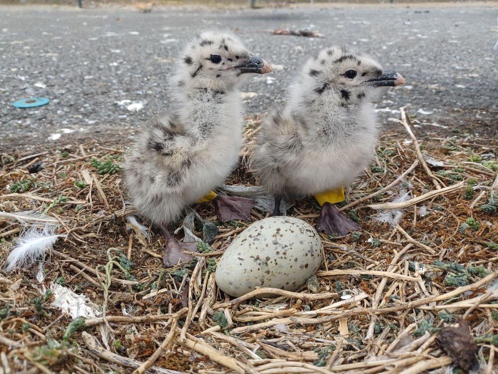 In 2004 hadden we een eerste nest van grote mantelmeeuw in Zeebrugge. We hielden dat nest goed in de gaten en merkten al snel dat er iets niet klopte. Zo zagen we dat het vrouwtje af en toe haar nest verliet, maar dat er geen partner was die op de eieren kwam zitten om ze warm te houden. Het vrouwtje in kwestie had geen mannetje gevonden en had dan maar in haar eentje een nest gemaakt met drie onbevruchte eieren. Toen het vrouwtje weer voor lange tijd van het nest was - ze moest immers af en toe eten voor zichzelf zoeken - zijn de eieren opgegeten door naburige meeuwen in de kolonie. Nu, in juni 2025, is er voor het eerst wel een echte kroost, met een moeder én een vader.