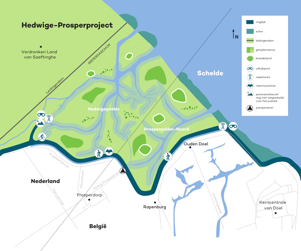 “Deze getijdennatuur levert niet alleen een belangrijke bijdrage aan de Europese natuurdoelen, maar beschermt de regio ook tegen wateroverlast. Door de klimaatverandering stijgt de zeespiegel en dus ook het waterpeil op getijgebonden rivieren zoals de Schelde. Om de grote hoeveelheid water te kunnen slikken, moeten onze rivieren meer ruimte krijgen. En dat gebeurt bij de Schelde onder andere door de Zeeschelde terug te verbinden met het Hedwige Prospergebied. De voormalige polders vangen een deel van het water op zodat de Schelde verder stroomopwaarts ontlast wordt en de achterliggende gebieden minder wateroverlast ervaren. Dit alles werd gerealiseerd dankzij de werken die kaderen in het Sigmaplan en de uitvoering van het Natuurpakket Westerschelde”, aldus Laurent vanden Abeele, projectleider bij het Agentschap voor Natuur & Bos.