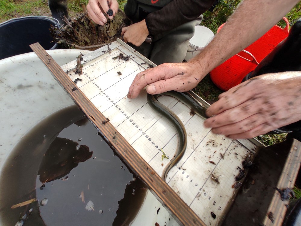 Er wordt alvast reikhalzend uitgekeken naar de fint, een haringachtige die nog niet zo heel lang geleden terugkeerde in Vlaanderen en die vroeg of laat ook in de fuiken van het Hedwige Prospergebied terecht zou kunnen komen. Ook van paling wordt verwacht dat de soort hier meer en meer zal opduiken. In de vorige bemonstering werd al een aantal exemplaren gevangen en ook vandaag zat er een volwassen paling in de fuik. Palingen die de reis naar zee aanvatten, hebben een goede vetlaag nodig om die zware tocht te vervolmaken. Ze zwemmen actief het Hedwige Prospergebied binnen om te foerageren. Ze vinden er gemakkelijker voedsel en andere prooisoorten dan in andere gebieden in de Schelde. “Uit eerder onderzoek dat we deden op palingen in het Lippenbroek, een ander overstromingsgebied langs de Schelde, konden we vaststellen dat palingen actief overstromingsgebieden inzwemmen op zoek naar veel en gevarieerd voedsel. Dat geldt dus ook voor het Hedwige Prospergebied”, zegt Alain.