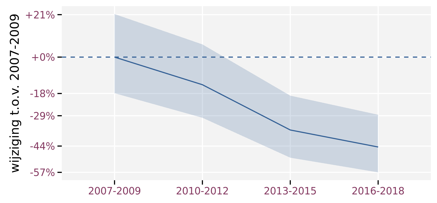 Typische voorbeelden van die trend zijn alom bekende soorten als kievit en patrijs. Beide soorten zijn sinds de start van de metingen in 2007 nog fors verder afgenomen (Figuur 1 en 2). Die gerapporteerde afname is al tientallen jaren lang aan de gang, maar lijkt dus nog steeds door te zetten.