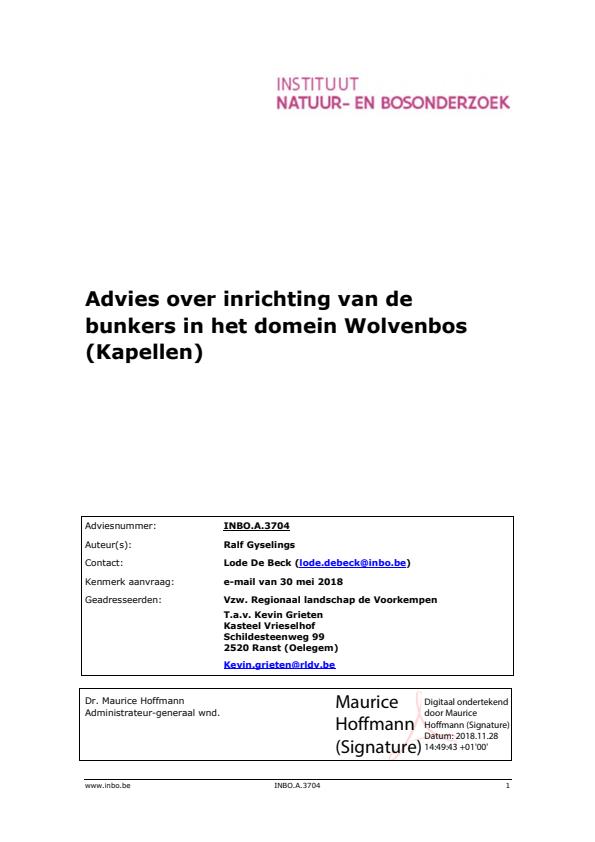 Advies betreffende de inrichting van bunkers in het domein Wolvenbos (Kapellen)
