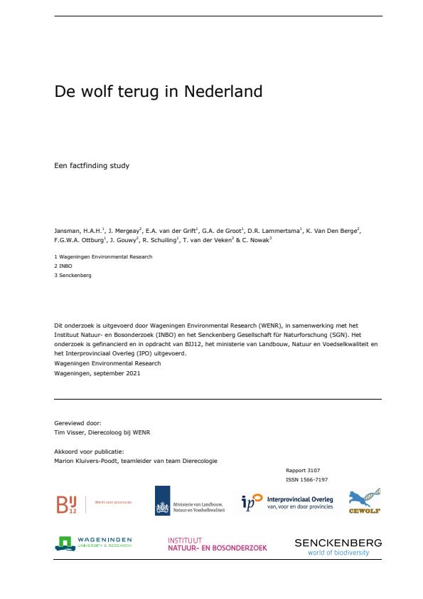 De wolf terug in Nederland. een factfinding studie