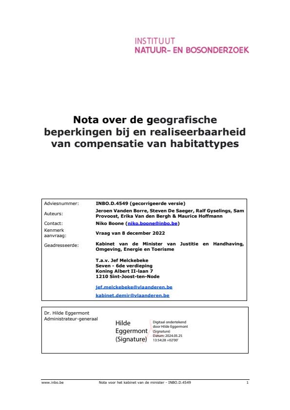 Nota over de geografische beperkingen bij en realiseerbaarheid van compensatie van habitattypes