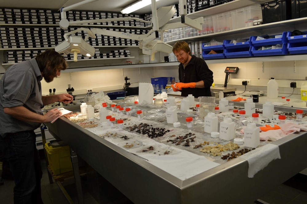 Het ontrafelen en determineren van maaginhouden (foto INBO)