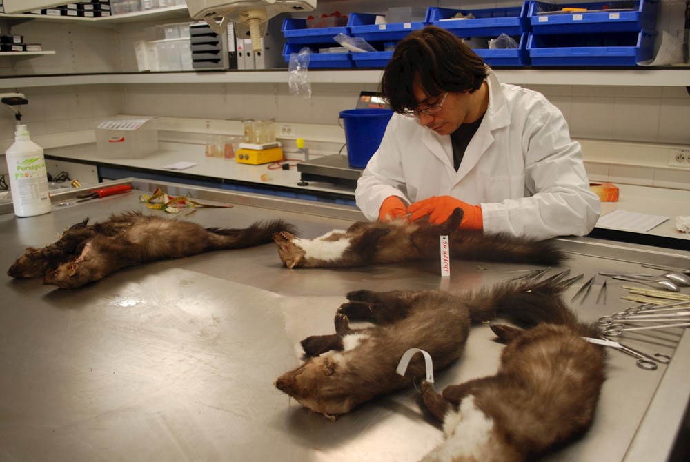 Autopsie van de duizendste steenmarter door Filip Berlengee. Steenmarters worden nu niet meer verzameld. (foto INBO)