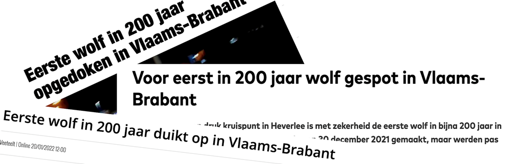 Rond de eindejaarsperiode was er een kluwen van wolfwaarnemingen in verschillende gemeenten verspreid over de Antwerpse Kempen, Vlaams-Brabant en zuidelijk Limburg. Sommige van die waarnemingen konden bevestigd worden aan de hand van beeldmateriaal.