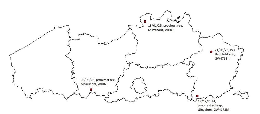 Drie dode schapen gevonden in een wachtbekken in Gingelom werden gedood door een wolf. Het ging om GW4178m, en mannelijke zwerver afkomstig uit de Göhrde roedel (Nedersaksen), en eerder vastgesteld als zwerver in Noordrijn-Westfalen: in Solingen bij Düsseldorf op 5 november 2024, en Köningswinter bij Bonn op 23 november 2024.