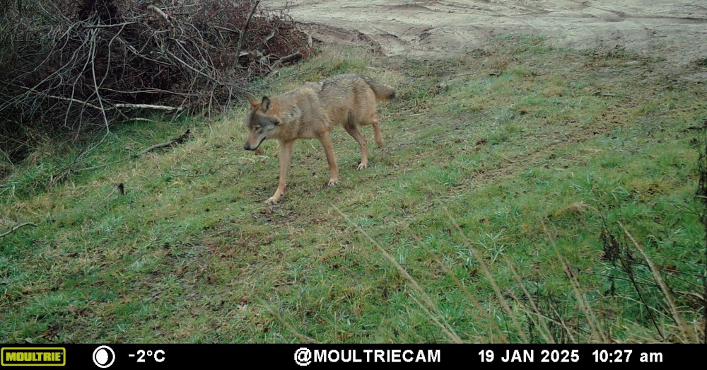 - Op 28 februari 2025 werd door verschillende mensen een wolf op doortocht gefotografeerd of gefilmd in de Antwerpse gemeentes Westerlo, Geel en Laakdal, en de aanpalende Limburgse gemeente Tessenderlo-Ham. Deze wolf bevond zich op een bepaald moment tussen de E313 en het Albertkanaal, maar stak uiteindelijk het Albertkanaal over op de N110, aan de ‘sluis van Kwaadmechelen’. Van deze wolf hebben we geen DNA, we hebben dan ook geen zicht op zijn herkomst of het verdere verloop van zijn zwerftocht.