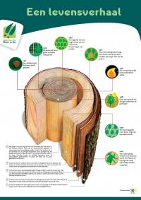 Een poster die de doorsnede van een boomstam en informatie over de verschillende lagen in een stam weergeven.