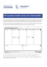 Een business model beschrijft de manier waarop een organisatie waarde creëert, levert en behoudt. Het business model canvas van Osterwalder vat alle facetten die invloed hebben op het creëren van die meerwaarde samen in negen bouwstenen. Via deze tool wordt uw business model op een beknopte en overzichtelijke manier in kaart gebracht.