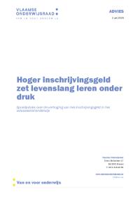 Hoger inschrijvingsgeld zet levenslang leren onder druk. Spoedadvies over de verhoging van het inschrijvingsgeld in het volwassenenonderwijs. Advies Vlor