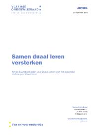 Gedaan met laden. U bevindt zich op: Samen duaal leren versterken. Advies bij het actieplan voor Duaal Leren voor het secundair onderwijs in Vlaanderen. Advies Vlor