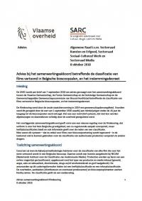 Advies van de Algemene Raad van de SARC i.s.m. de Sectorraad Kunsten en Erfgoed, Sectorraad Sociaal-Cultureel Werk en Sectorraad Media bij het samenwerkingsakkoord betreffende de classificatie van films vertoond in Belgische bioscoopzalen, en het instemmingsdecreet.