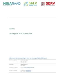 Strategisch plan drinkwater. Gezamenlijk advies SERV, Minaraad en SALV