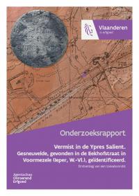 Gedaan met laden. U bevindt zich op: Vermist in de Ypres Salient. Gesneuvelde, gevonden in de Eekhofstraat in Voormezele (Ieper, W.-Vl.), geïdentificeerd. Eindverslag van een toevalsvondst