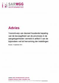 Op 21 juni 2012 ontving de SAR WGG een adviesvraag van minister Jo Vandeurzen betreffende het voorontwerp van decreet houdende bepaling van de bevoegdheid van de provincies in de aangelegenheden vermeld in artikel 5 van de bijzondere wet tot hervorming der instellingen. Met dit decreet wil de Vlaamse Regering tegemoet komen aan de wijziging van het provinciedecreet en de principes van het witboek interne staatshervorming.