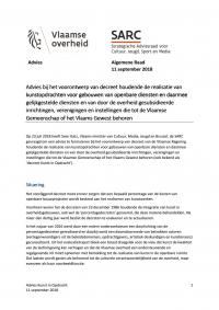 Advies van de Algemene Raad van de SARC bij het voorontwerp van decreet van de Vlaamse Regering houdende de realisatie van kunstopdrachten voor gebouwen van openbare diensten en daarmee gelijkgestelde diensten en van door de overheid gesubsidieerde inrichtingen, verenigingen en instellingen die tot de Vlaamse Gemeenschap of het Vlaams Gewest behoren (ook bekend als ‘decreet Kunst in Opdracht’)